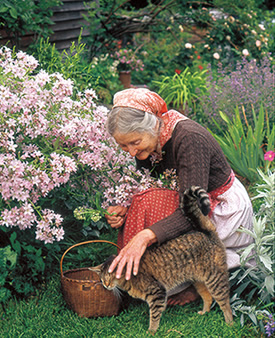 長男のセスに、18世紀築の友人宅を模した家を建ててもらい、みずから「地上の楽園」と呼ぶ美しい庭をひとりでつくりあげ、自然に寄り添った生活を続けた。